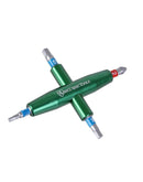 ABBEY TOOLS 4-WAY MULTI TOOL 2.5,4,5, #2JIS The Abbey Bike Tools 4-way precision multi-tool is the perfect choice to carry with you while on a ride. We designed this beautiful green anodized tool to fit into a compact saddle bag, riding wallet, or tuck into a jersey pocket. Everybody makes a multi-tool and there's a little bit of everything on the market, so what's different about ours? All of the little things that add up to one nice little tool. A multi tool is only as good as it's tool engagement so that's where we started. If you're familiar with other Abbey tools you've no doubt noticed that they fit tighter than anything else out there and this one is no different. We use precision stainless steel bits that fit like a glove into the bolts on your modern bike. They wont strip out fasteners like the cheap offshore made tools that are so common in the bike world. They also won't rust into a ugly brown color after a season in a saddle bag. The next part of the multi-tool is the chassis, for this we used our favorite US drawn aluminum alloy and built a 4 position frame to hold the bits. At first glance the tool looks like it might be cumbersome but once you get it in your hand you realize how simple and effective the ergonomics of the tool are. Offering good leverage for all of the small fasteners on your bike, be it the precision adjustment of limit screws or adjusting the handle bars because you had one beer too many when you bolted them down late last night. |