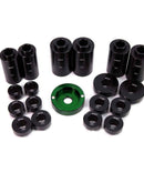 ABBEY BIG DRIFT KIT FOR MODULAR BEARING PRESS For better and worse frame manufacturers are switching to some kind of a press fit bottom bracket system. At the same time they are moving away from pressed in headsets. Instead of making a press for hubs another for bottom brackets and a third for head tubes we covered all three with one modular press system. The modular system consists of a press head, press shaft, shaft extension and our patent pending split nut. This keeps the press manageable for hubs and bottom brackets and allows you to extend the press for tall head tubes. One of the most unique things about our press is the Split Nut. It's basically a nut that's cut in half and held close by industrial magnets. The hinged unit allows you to place it anywhere on the press shaft with no need to wind it down endlessly to press in a bearing. It also takes care of the pinch hazard that some other presses are known for. The press head features a large ball thrust bearing. This keeps the press action super smooth and cuts down on the effort required. It works so well that we offer the press with or without handles. The handled version receives a pair of 4.5" (115mm) long handles. Because not everybody has room in the shop or the team trailer we also offer the press without handles and instead cut an 8mm hexagonal hole in the top. This allows you to use an allen wrench when you do run across that odd job that requires a bit of extra leverage. |