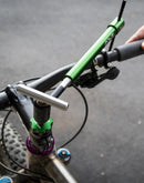 ABBEY TOOLS HANGER ALIGNMENT GAUGE LEVER SETTER TOOLS The lever setter is a unique tool that works in conjunction with our HAG to set brake and shifter levers at the same height from side to side. The tool temporarily replaces the headset top cap and allows you to thread a hanger alignment tool into the lever setter. Then you can use the HAG indicator to set levers the same from one side of the bar to the other. It's a great little fitting tool to eliminate variables in your bike fit. It's also great to balance the variations in bends that metal bars sometimes have from one side to the other. Once you're satisfied with your lever placement simply remove the tool and replace your headset top cap and go ride Recommendations: |