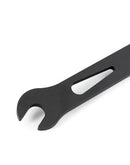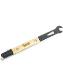 ABBEY TOOLS SHOP PEDAL WRENCH With many pedal manufactures going away from 15mm wrench flats the traditional pedal wrench is becoming obsolete. To further complicate things some manufactures require both 6 and 8 millimetre keys within their product range. This means it's hard to know exactly what tool to grab for pedal removal or installation. Enter the Abbey Shop Pedal Wrench. With the once standard 15mm box end on one end and a custom 6 and 8 millimetre swivel bit on the opposite end it's the only pedal wrench you'll ever need. Perfect to keep at the fit station, on the sales floor, rental fleet counter and certainly at the tool bench. |