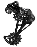 SRAM NX EAGLE 12 SPEED REAR DERAILLEUR Purpose This new NX Eagle™ derailleur features the proven SRAM 1x-specific X-HORIZON™ design. The larger, 14-tooth X-SYNC™ lower pulley easily facilitates 11- to 50- and 10- to 50-tooth cassette capacity, and also adds to NX Eagle’s overall smooth-pedaling feel. The Type-3 ROLLER BEARING CLUTCH™ provides quiet, consistent performance and durability. SPECIFICATIONS