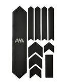 - Basic - 9 parts for a universal protection system: 1 big part for the down tube, 5 arrow parts for extending the down tube protection or for the chainstay or for top tube, 3 circles for cable wear protection