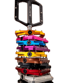 Our goals for the MK5 mountain bike pedals followed the same design and development path as every other pedal before it; utilise any advances in materials and manufacturing, balance the weight and durability, and maximise the amount of grip. From the MK4 to the MK5, we shed 65 grams per pair. The platform footprint was increased by 7%, the dish by 1mm and the pin width was decreased by 0.5mm.