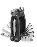 - 16 function tool: 2 / 2.5 / 3 / 2.5 & 4 (L-type) / 5 / 8 mm Allen wrenches, 4 / 6 mm hex sockets, T10 / T15 / T25 Torx® wrenches, #2 Phillips / flat head screw drivers, 14G / 15G spoke wrenches, CrMo steel chain tool and chain hook