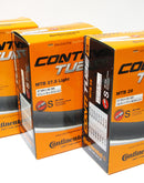 CONTINENTAL MTB TUBE 29" PRESTA VALVE The new ContiTube bicycle tube program makes it easier for you to find the ideal tube for your cycling demands. The user-friendly tube system is suitable for any size, length, design, type of valve and perfect for any tyre dimension and riding occasion. Varying tube types can affect your tyres’ handling characteristics: the Standard tube, available in all dimensions is the best choice for everyday cycling whilst Light & Supersonic varieties give racers the option of lower rotating weight, therefore increasing speed. The lightweight tubes have a lower thickness and so it is imperative that inflation pressures are maintained to prevent the risk of pinch flats.