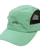 Lightweight and breathable, mint nylon with black mesh 5-panel cap.