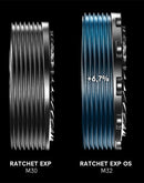 The latest 240 Hybrid hub incorporates special components like the Ratchet EXP OS system with 30 teeth to ensure reliable power transmission from both the rider and the motor to the ground. The drive side bearing is bigger and the hub flange is enlarged. The spoke holes are expanded, purpose-built for 2.34 mm DT Swiss spokes, which deliver enhanced resistance to acceleration and braking torques. Crafted from hardened steel, the freehub system further reinforces the hub's resilience, allowing for extended and trouble-free eMTB rides.