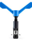 The CT-15 is a professional-grade tool designed to drive rivets in and out of any bicycle chain, from beefy single-speed half-link chains to the latest 13-speed systems. The unique triple-wide floating shelf ensures that every chain is securely fixtured and centered during use. The ergonomic handle stores spare driving pins as well as a peening anvil used for peening Campagnolo® 11, 12, and 13-speed chains. Built for daily use and fully rebuildable.